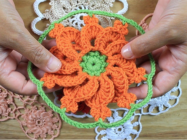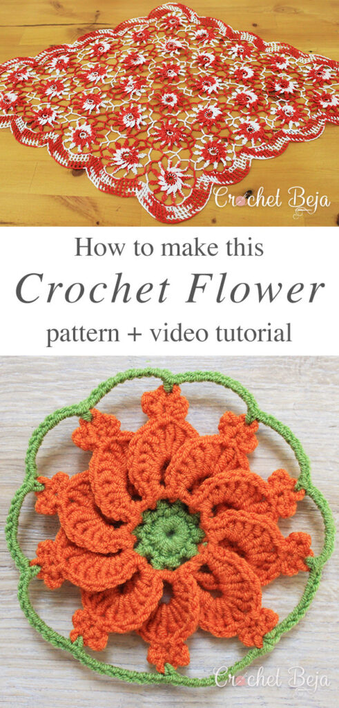 This unique crochet flower pattern adds a touch of elegance and charm to any project. It looks stunning with any type of yarn you choose. In the video tutorial, I showcased the design using two complementary colors—one for the petals and another for the center and edges—creating a beautiful contrast that enhances the flower’s intricate details.