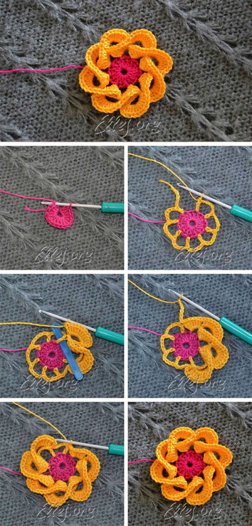 This crochet pattern is simpler than it appears! Just follow the step-by-step instructions. Experiment with various yarn colors and create dozens of these beautiful crochet flowers in no time.