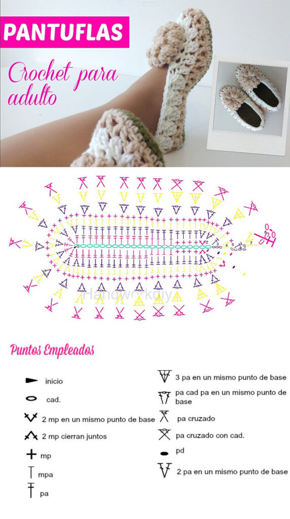 This pattern is incredibly straightforward, as shown in the image below, allowing you to create these crochet slippers in just a few hours.