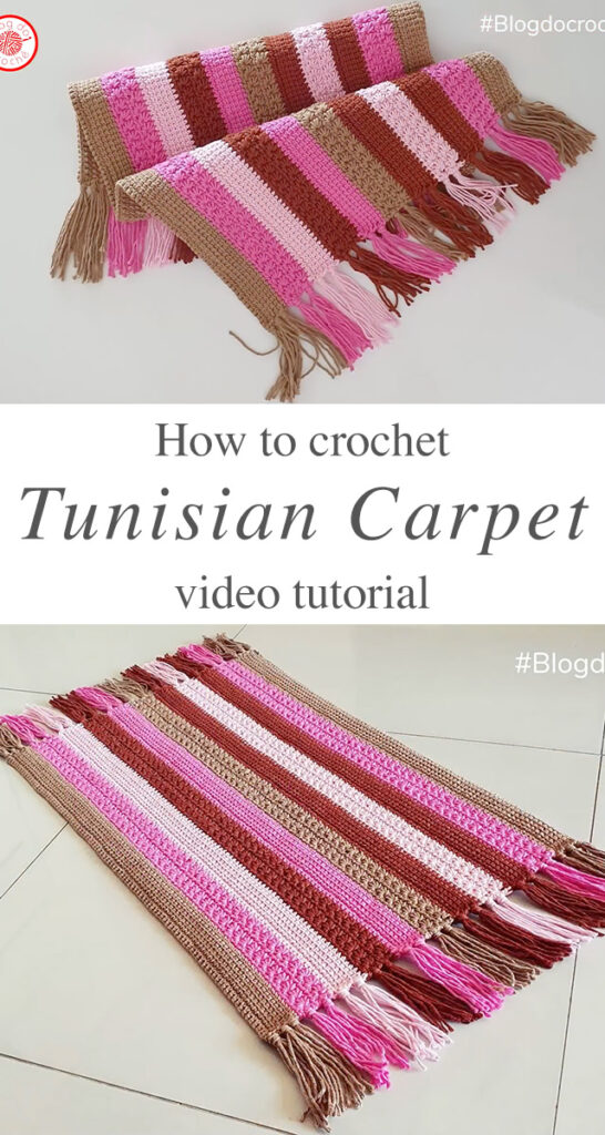 Watch this video tutorial to learn how to make this crochet Tunisian carpet. The Tunisian knit stitch is really a crochet stitch that looks knitted.