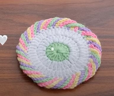 As the tutorial progresses, the instructor emphasizes the importance of stitch consistency and tension to maintain the coaster’s circular shape. The video includes close-up shots and occasional zoom-ins on the hand movements, which help clarify the positioning of each stitch. The instructor also provides verbal cues and on-screen text to reinforce key instructions, making it easier for viewers to stay on track. The design itself evolves into a lovely, floral-inspired round shape, perfect for adding a handmade touch to any coffee table or dining set.