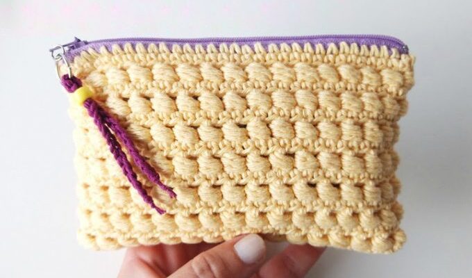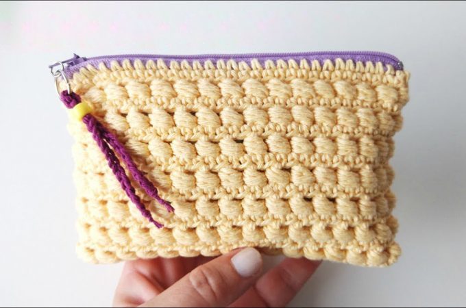 This video tutorial will teach you how to make a handy violet and yellow crochet bag with a zipper. Keep reading for a materials list and tips on various situations you can use this cute bag for!