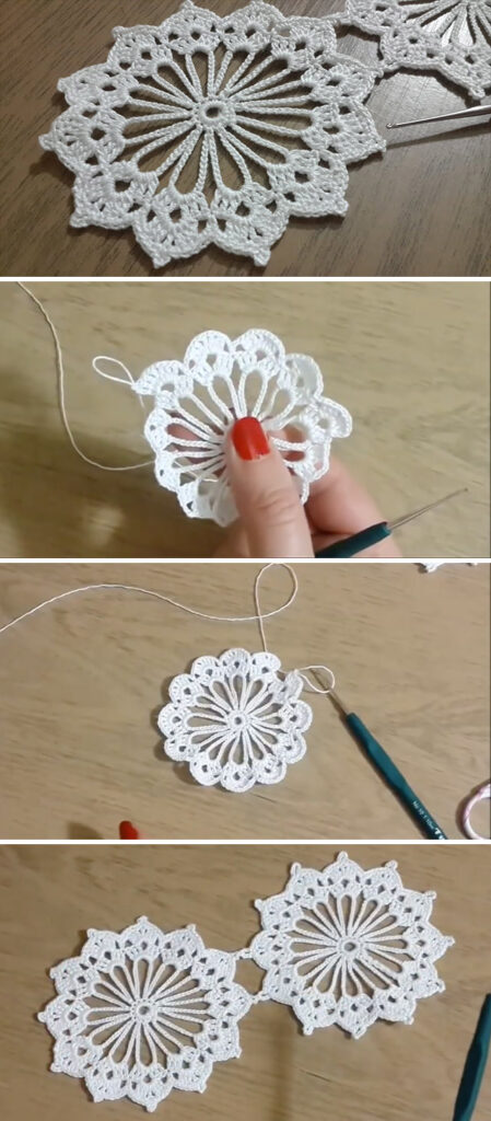 These lace motifs offer endless possibilities for enhancing your projects! Create a stunning bed wrap to bring a touch of sophistication to your bedroom. The delicate flower motif stitch is also ideal for adding charm to your clothing—pin it to a sweatshirt for a unique crocheted accessory. For a stylish summer look, incorporate these flower motifs into a crocheted shawl to craft a chic and breezy wrap!