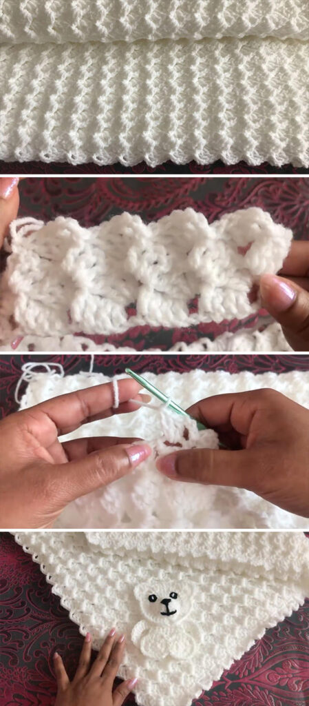 The oversized crochet blanket is wonderfully simple to create. You’ll need soft, delicate baby yarn in a light shade like white, as shown in the video, or perhaps a gentle pink. Designed in a rectangular shape, the blanket’s ideal dimensions are 40 inches in length, making it perfect for a baby-sized piece around 35 to 36 inches. Its stunning texture is a delightful combination of lace-like elegance and cozy puffiness!