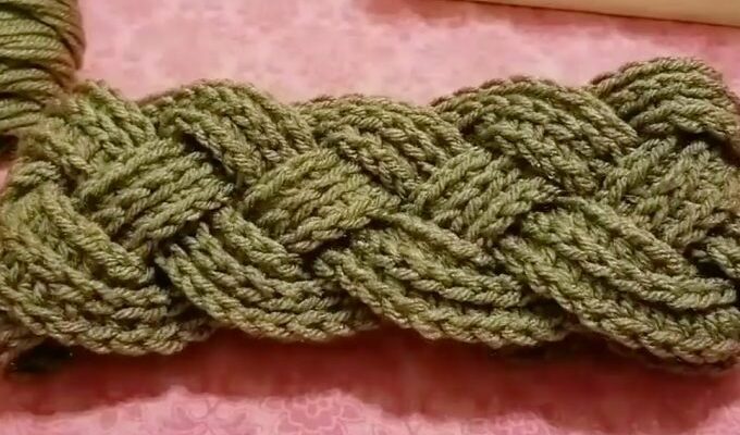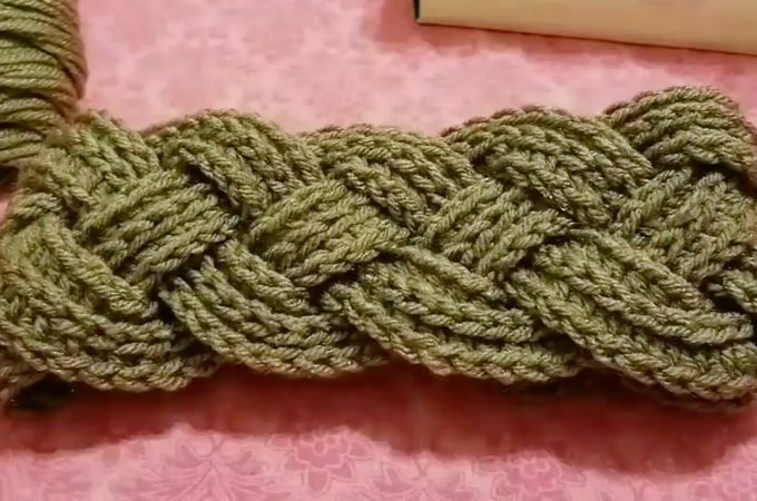 To create this headband, you’ll need acrylic yarn, a 6.5 mm crochet hook, and a 3.75 mm crochet hook. Additionally, you’ll require a stitch marker, a needle, and scissors. Begin by crocheting four pieces of the same length, then assemble them together to complete the pattern.