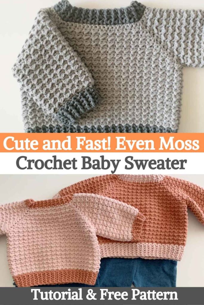 A Cute and Fast Even Moss Stitch Crochet Baby Sweater is the perfect combination of texture, simplicity, and speed—ideal for a last-minute gift or a weekend project. The even moss stitch (alternating slip stitch and half double crochet) creates a beautifully textured, squishy fabric that’s soft, stretchy, and perfect for baby wear. This stitch is easy to learn and gives the sweater a cozy, woven look while still being breathable and lightweight. It’s worked flat or in rounds, depending on the style, and suits both beginner and intermediate crocheters.