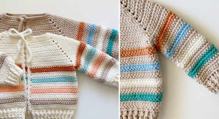 Typically crocheted from the top down in a raglan style or with basic front and back panels, the sweater’s construction is straightforward and beginner-friendly. The stripes are created by alternating yarn colors every few rows, and the pattern allows flexibility in choosing pastel shades, rainbow brights, or minimal two-tone combos. For added functionality and cuteness, many versions include button closures on the shoulder or back to make dressing easier for little ones.
