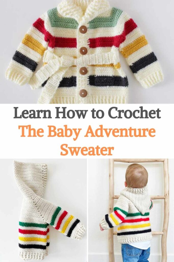 The Baby Adventure Sweater is a simple and adorable crochet project designed especially for babies, making it a perfect choice for beginners. Typically made with soft, baby-safe yarn and a medium-sized crochet hook, this sweater is worked from the top down, allowing you to shape the neckline and body without needing to sew multiple pieces together. It often features basic stitches like half double crochet (hdc) or double crochet (dc), making it both accessible and relaxing to work on.