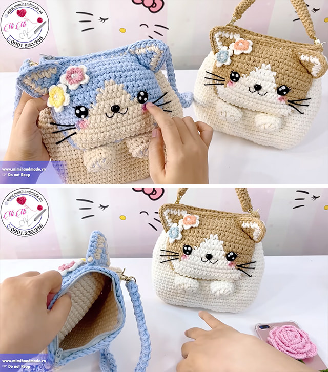Tutorial and photos of this crochet cat bag by: MIMI Handmade.