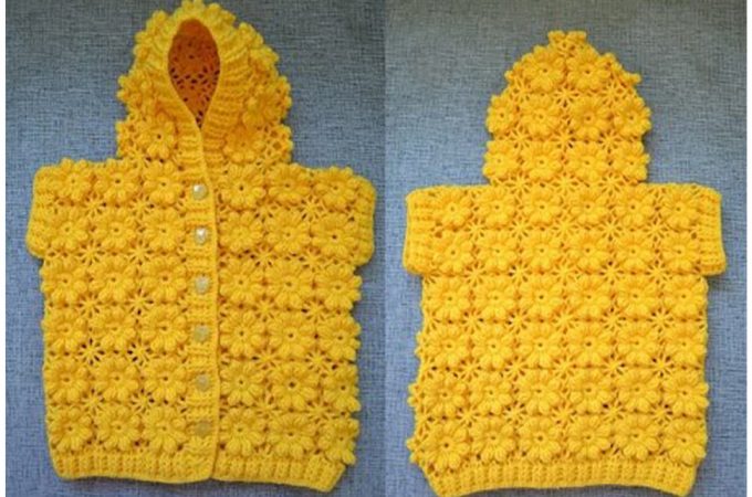 This charming baby hoodie is made from a delicate network of crocheted flowers, each interconnected to create a beautifully detailed and dense fabric. It’s not just cute—it’s wonderfully warm and perfect for keeping your little bundle snug throughout the colder months.