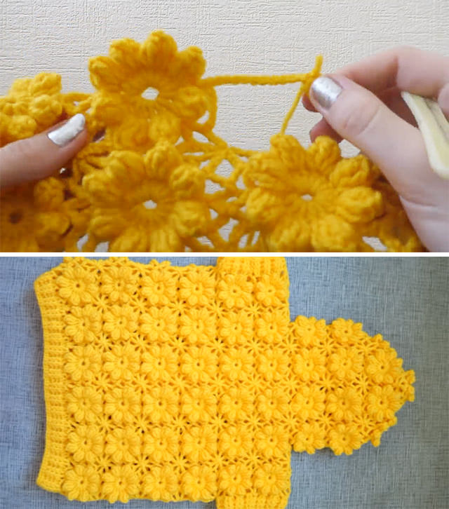 - You’ll end up with 15 dc columns. Finish the round by pulling the loop on the hook to close the flower.