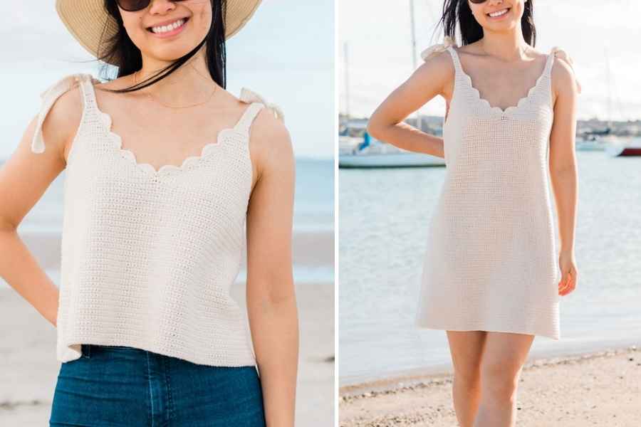 A lightweight, breezy design with a delicate scallop (shell) stitch that adds elegance and stretch. Ideal for layering over swimwear or pairing with shorts!