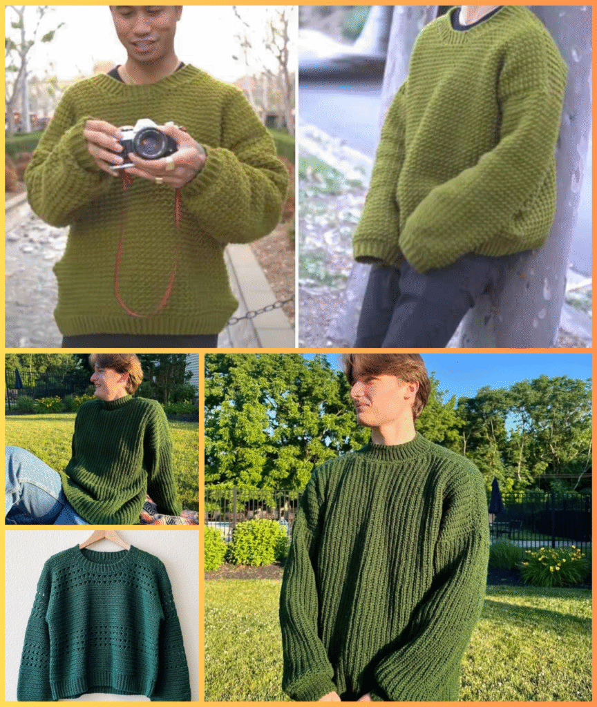 If you’re looking to make a cozy, relaxed-fit sweater for yourself or a special guy in your life, this oversized men’s crochet sweater is the perfect project. With a simple shape, clean lines, and room to move, it’s stylish enough to wear out, but comfy enough for lounging on the couch.