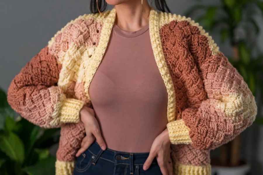 This stitch is perfect for cardigans because it adds structure, thickness, and visual interest.