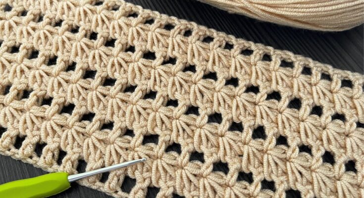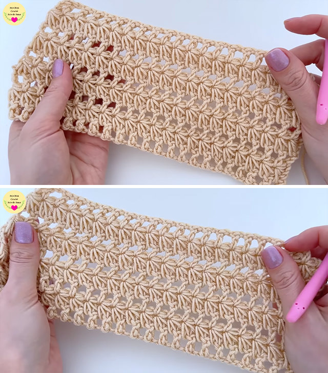 The crochet star lace stitch weaves together intricate loops and airy gaps, forming a stunning and elegant openwork design.