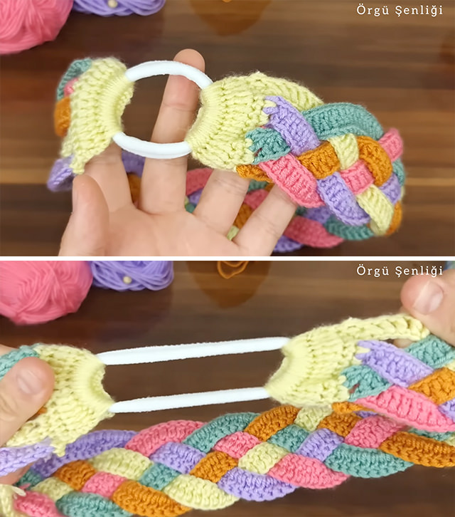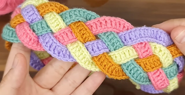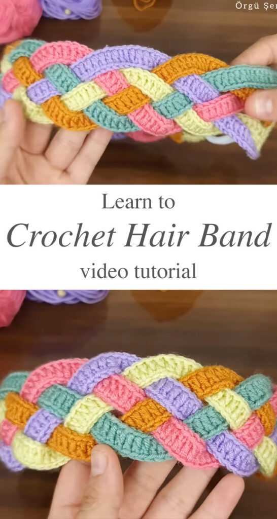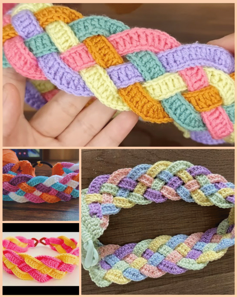 Enhance your look with handmade sophistication by crafting a one-of-a-kind crochet hairband, designed with intricately woven straps in bold, eye-catching colors.