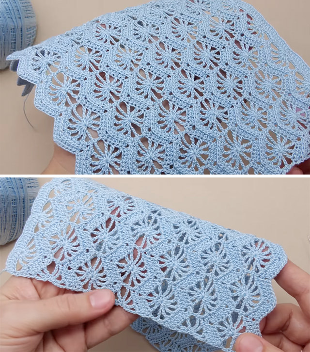 Elegant Garments: Transform your wardrobe with the classic charm of crochet lace star stitch. Perfect for crafting airy shawls, stylish scarves, and graceful tops or cardigans, this pattern infuses every piece with an air of refined sophistication.