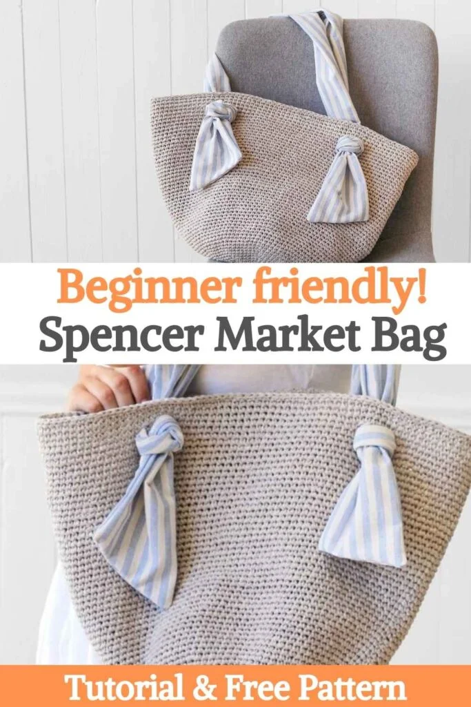 If you’re new to crochet and want to make something stylish and useful, the Spencer Market Bag is a perfect first project. It’s a simple tote-style bag made using just basic stitches — mostly single crochet — and worked in the round, so there’s no complicated shaping or sewing involved. Whether you use it for groceries, books, or everyday essentials, this bag is not only functional but fun to make. With just yarn, a hook, and a little time, you’ll have a handmade market bag that’s beginner-friendly and totally customizable!