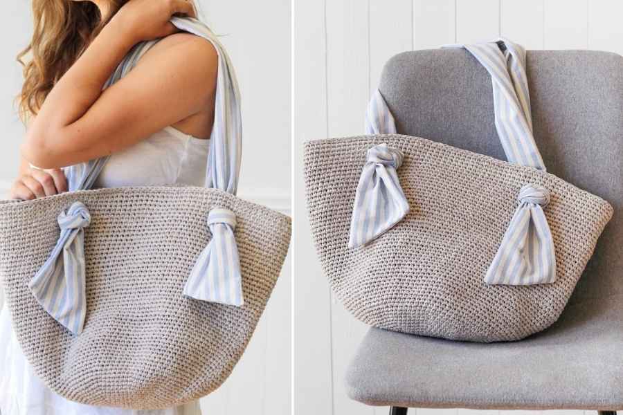 - Crocheted handles: Chain 60–80, then work 1–2 rows of single crochet across the chain. Sew each end to the inside of the bag.
