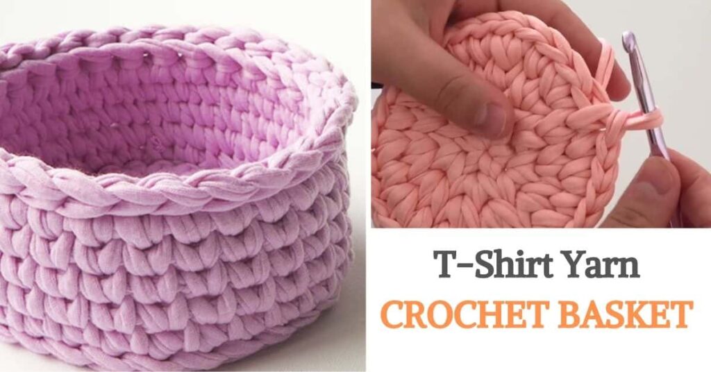 T-shirt yarn is easy to work with using large hooks (8–12 mm). Most crochet baskets use simple stitches like: