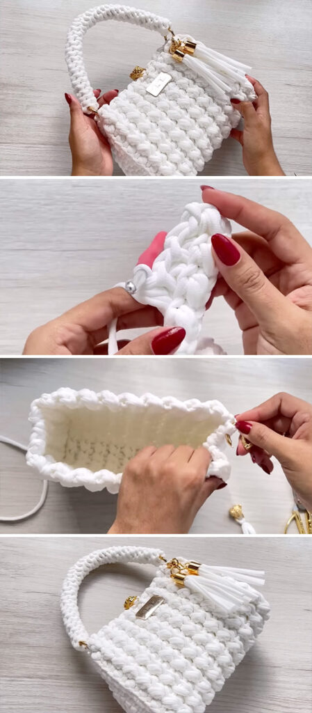 - Attach handles using crochet, metal rings, or by sewing leather/faux leather straps.