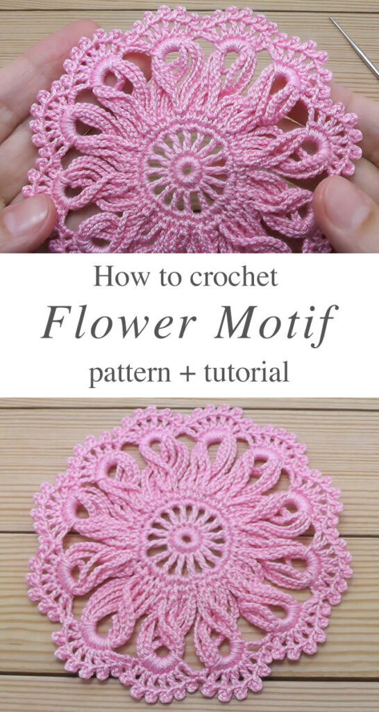 Continue reading to discover the tutorial and pattern for this beautiful crochet lace flower motif.