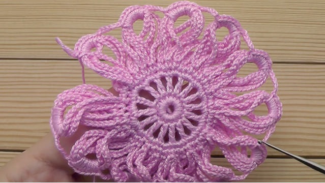 This crochet lace flower motif features basic stitches such as single and double crochet, making it much easier to create than it appears. By crocheting several flower motifs in various colors, you can assemble a beautiful table runner to enhance your dining table decor.