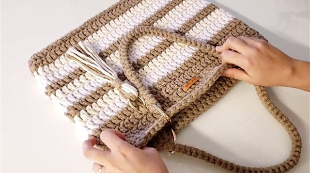 String thread is an excellent choice for crafting this crochet bag due to its durability and strength. Not only does it create a stylish and chic design, but the sturdy cotton string used for the bag’s base ensures it can support even the heaviest items. For the straps, you can crochet them using string thread as demonstrated in the video, or opt for thin belts as handles for a unique and functional touch.