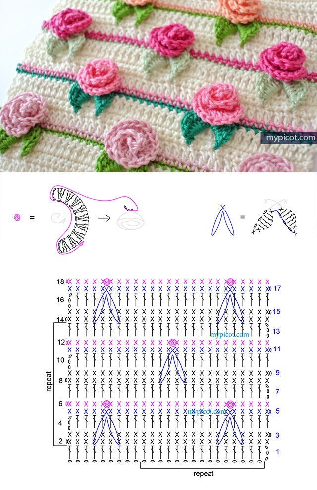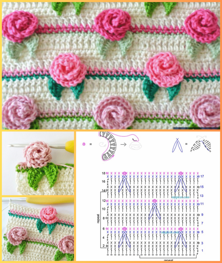 These rose stitches are charming, vibrant, and full of personality. They add a soft, feminine touch to any project, enhancing its overall appeal. Create adorable gifts for babies by incorporating the rose stitch in a variety of colorful yarns, making each piece uniquely special.