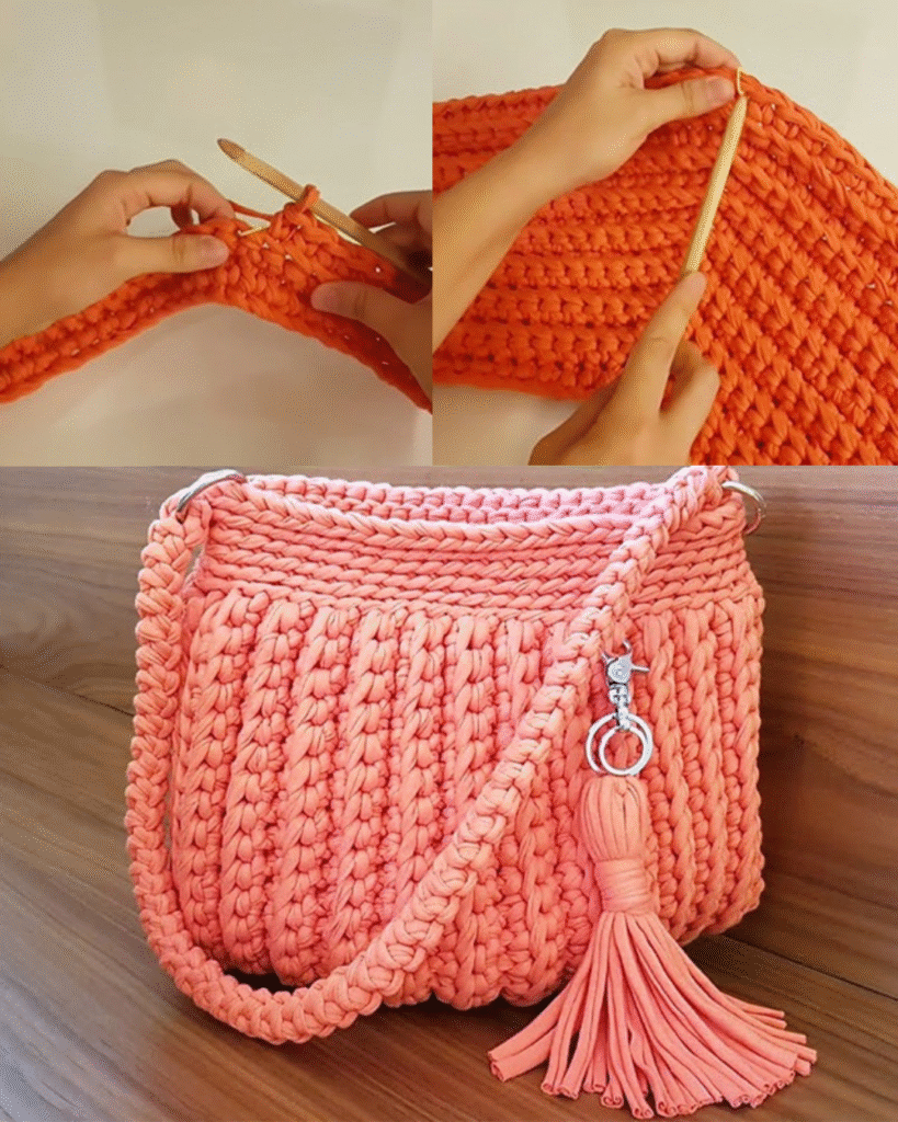 This crochet handbag features simple stitches, making it perfect for beginners. The tutorial provides clear, step-by-step instructions to guide you through the process.