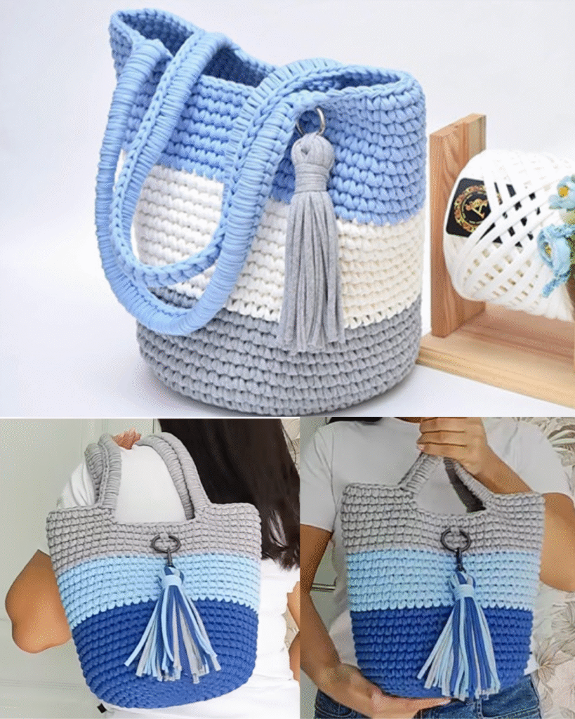 Secure all loose ends neatly with a darning needle. To elevate the design, you might add a decorative tassel or a charming crochet accent. These thoughtful embellishments not only refine the bag’s appearance but also infuse it with a unique, personal flair.