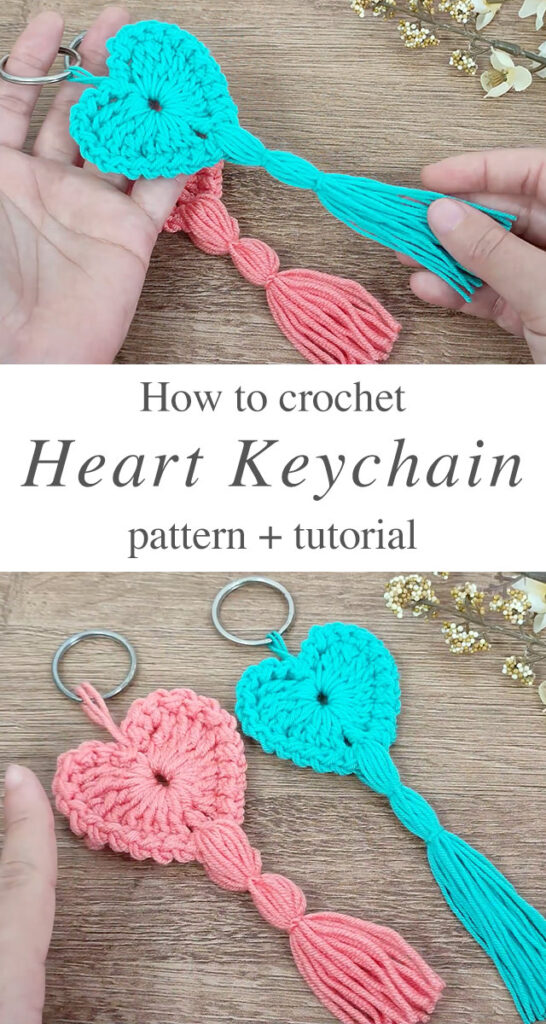 Keep reading for the crochet heart keychain pattern and video tutorial.