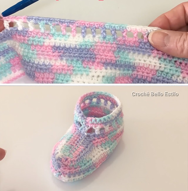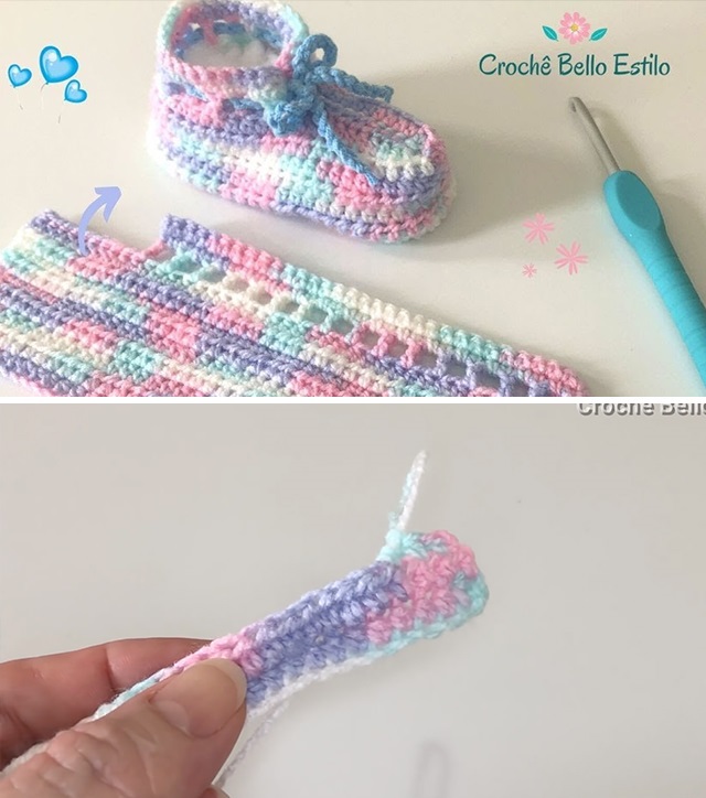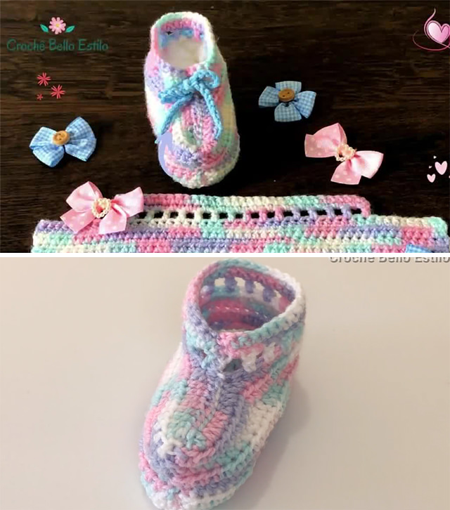 – Repeat for the second crochet baby shoes.
