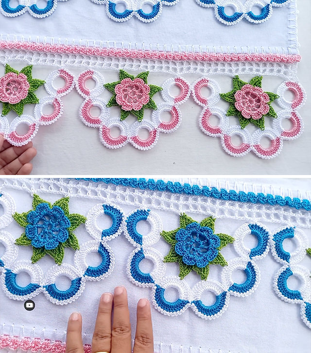 Learn how to easily make a beautiful flowers crochet lace edging that you can use in many projects. Check the easy pattern and video tutorial below.