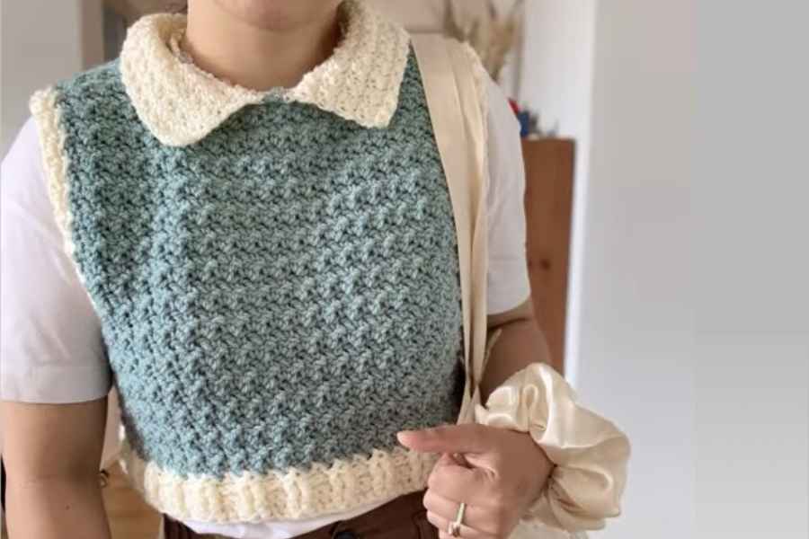 In the final section, the video shows how to finish the edges with a clean border around the armholes and bottom hem, ensuring the vest maintains its shape. The result is a comfortable, layering-friendly piece that works well for casual or dressy outfits. This crochet vest with collar is a satisfying project for anyone looking to create a wearable, cozy, and elevated wardrobe staple.