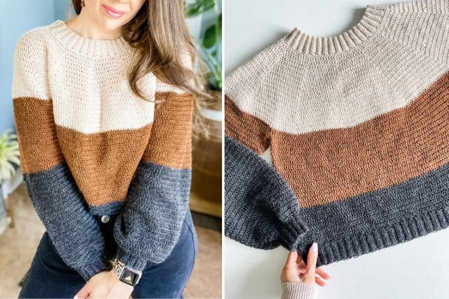This sweater is designed with ease in mind, making it perfect for beginner crocheters. It uses basic stitches such as single and double crochet, and the colorblock pattern is created with straightforward panel construction. This reduces the complexity, allowing crafters to focus on technique and tension without getting overwhelmed by advanced patterns.