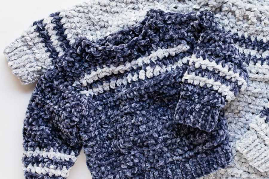 A velvet pullover is a soft, warm, and cozy sweater that’s perfect for babies and kids, especially during the colder months. The plush texture of velvet yarn makes the pullover feel luxurious while keeping it lightweight and comfortable. With basic shapes and stitches, this project is easy enough for confident beginners.