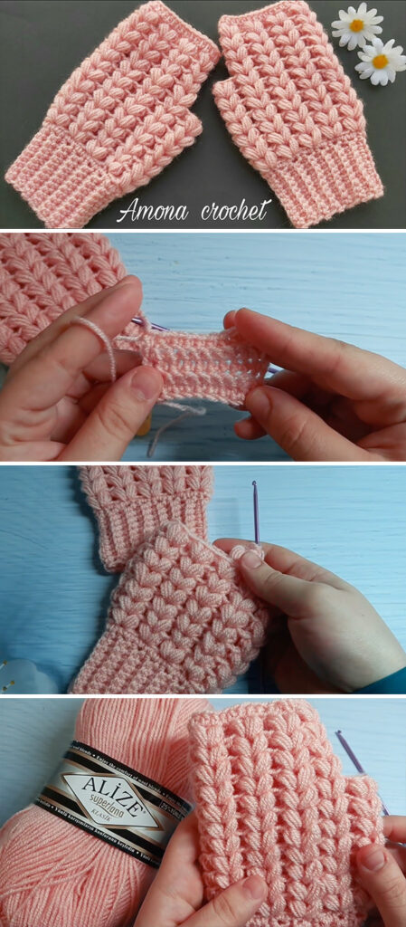 Puff stitch fingerless gloves showcase a stunning design that not only looks amazing but also keeps you cozy and warm.